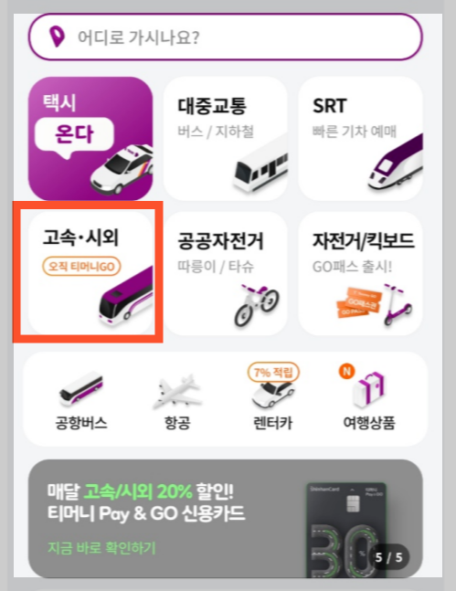 티머니GO 모바일 고속버스 예매방법