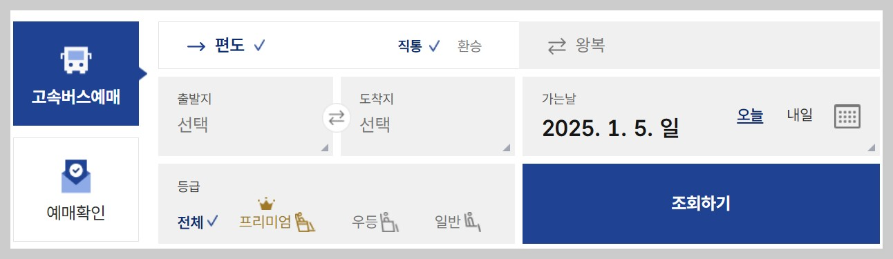 출발지와 도착지 선택(고속/시외 구분)