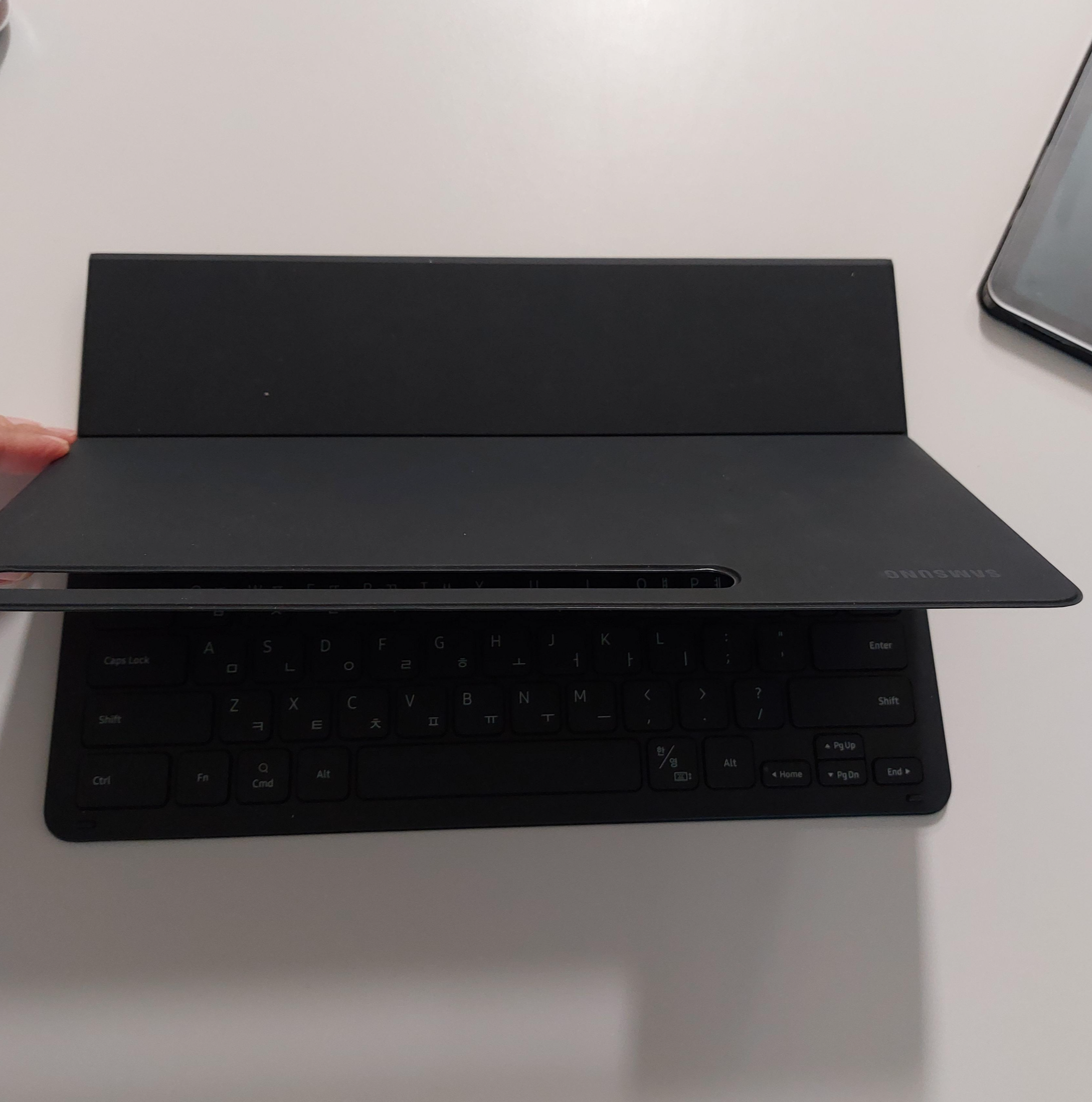 윗부분과 아래 자판 부분은 S8+와는 달리 분리가 되며 매우 강한 자석으로 탈부착이