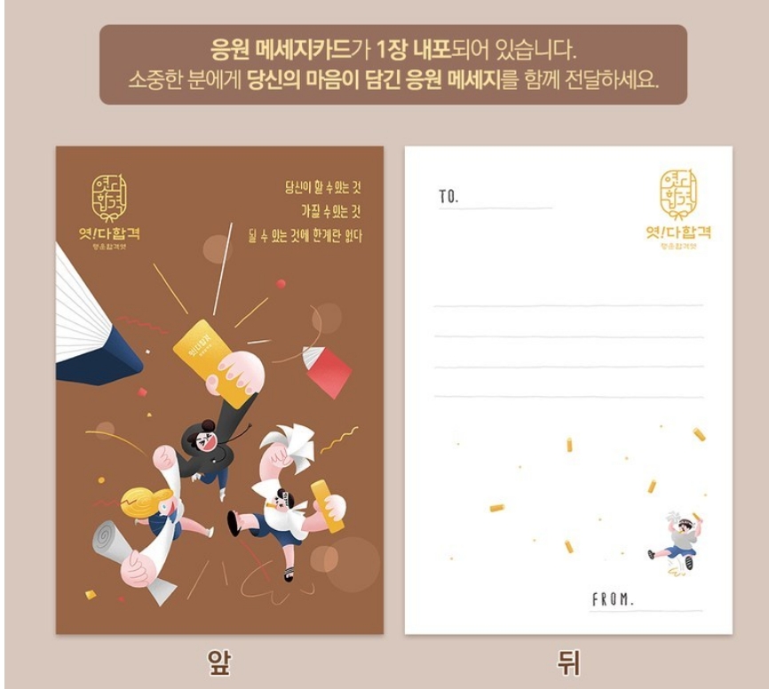 고급스런 포장과 응원의 문구가 있으며