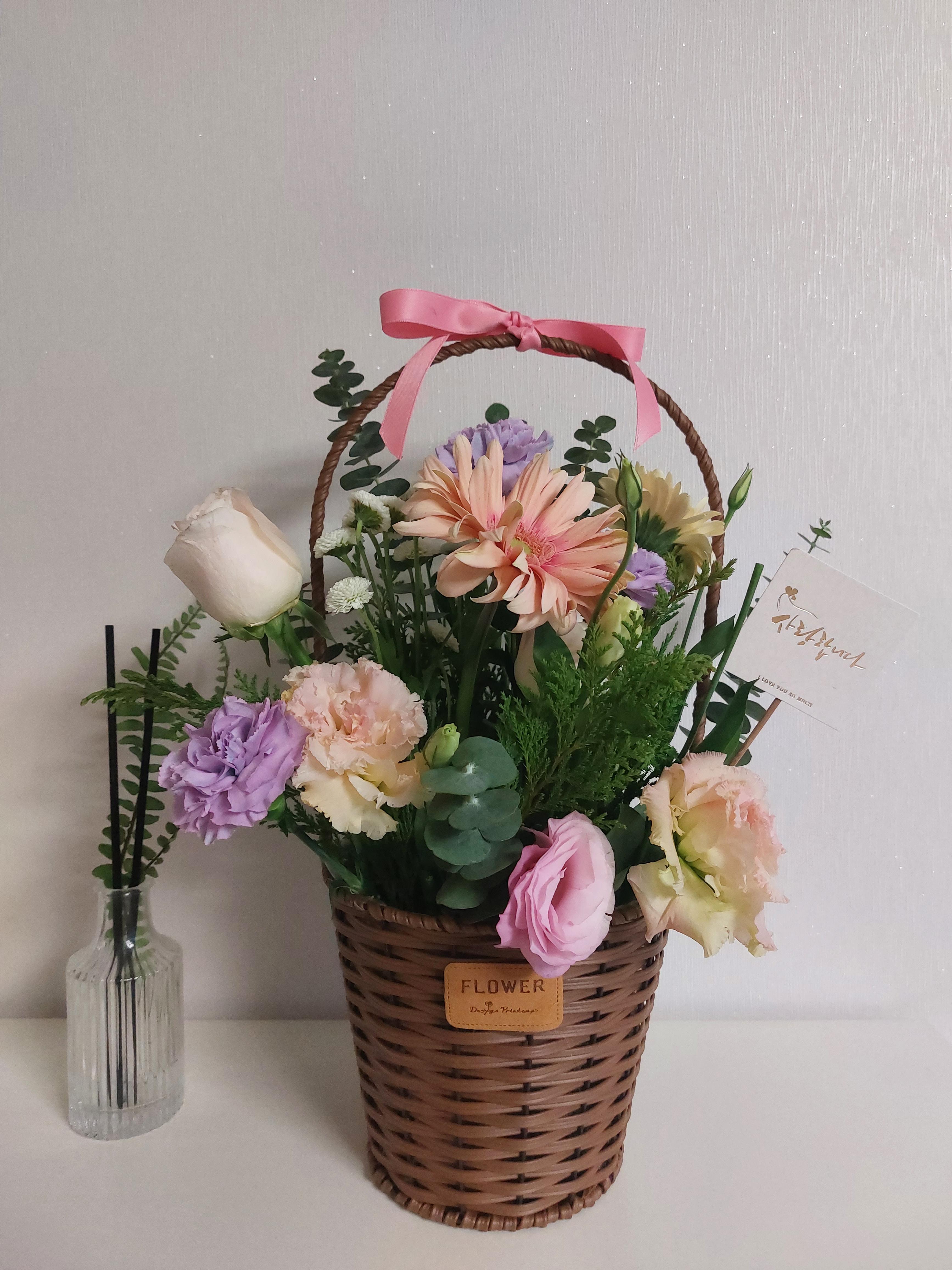 중학교에 다니는 딸이 어느날 생화 꽃바구니를 들고 왔다.