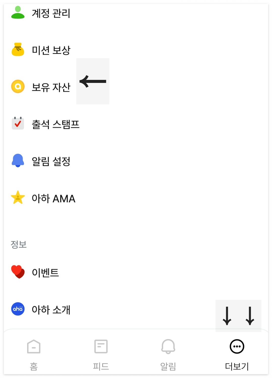 더보기→보유 자산에 들어 가시면 확인이 가능 합니다.