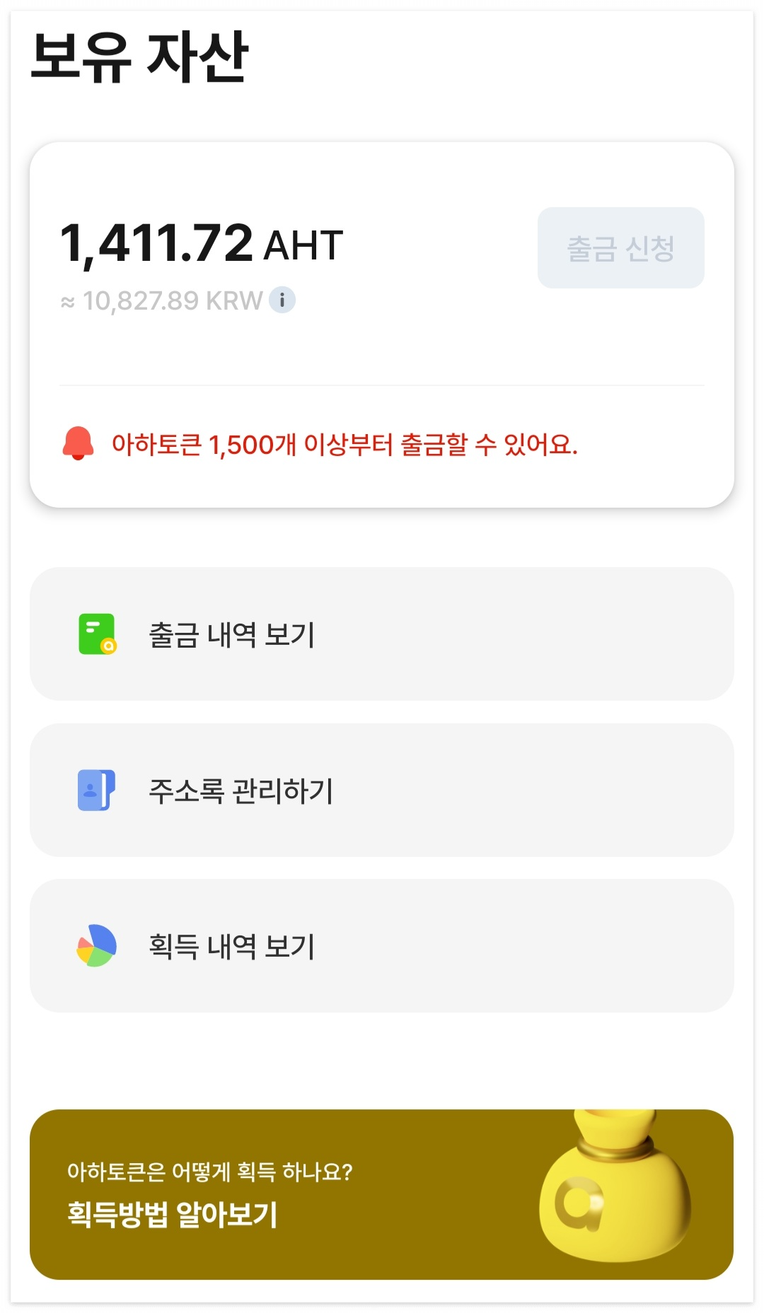 출금이 가능합니다. 중요한건 토큰 1500개 획득이