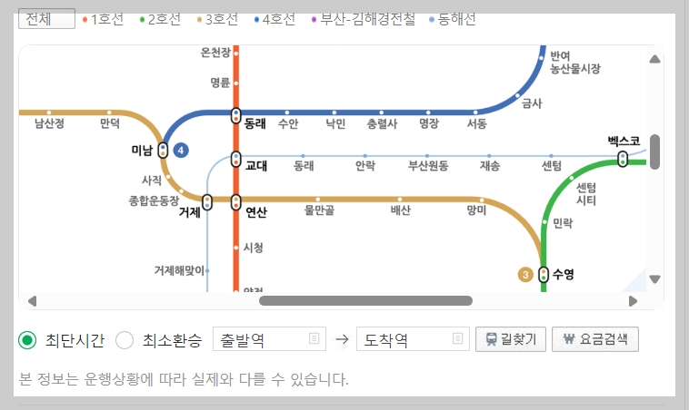 - 해당 지역 지하철 홈페이지에 접속