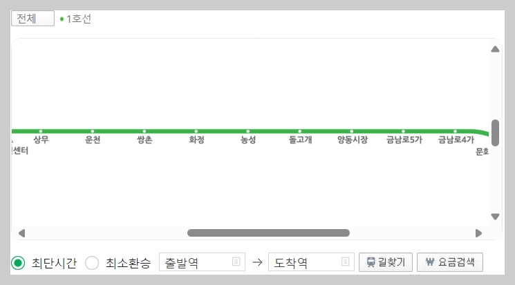 출발역과 도착역을 입력하거나, 노선도로 탐색을 합니다.
