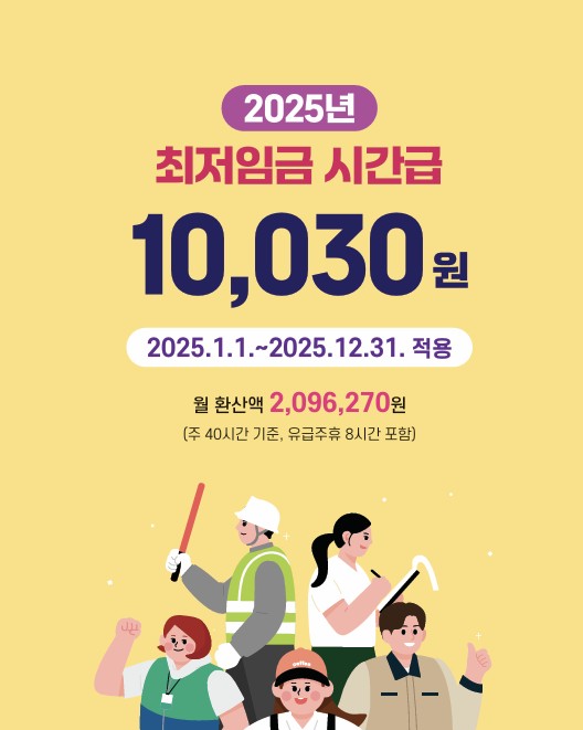 시간급은 10,030원으로 2024년 9,860원 대비 170원이