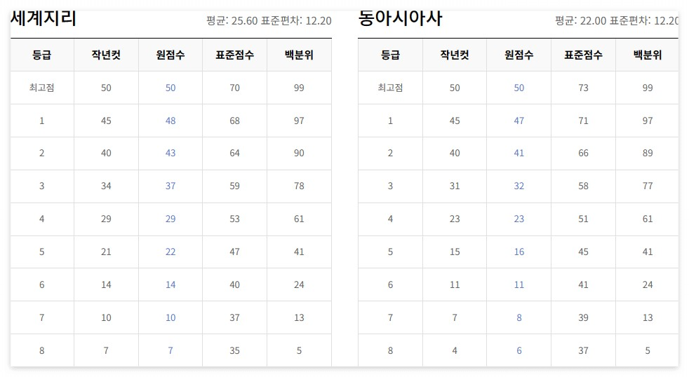 ● 세계지리: 평균 25.60 표준편차 12.20