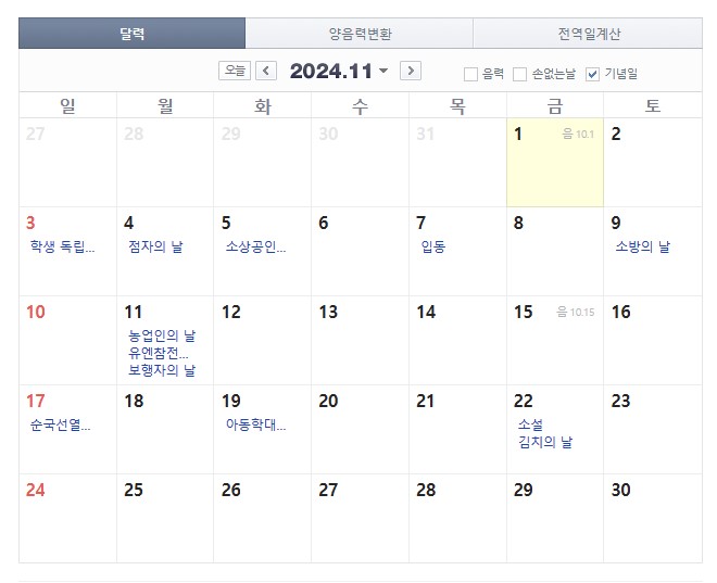 2024년 휴일을 미리 확인 하시어