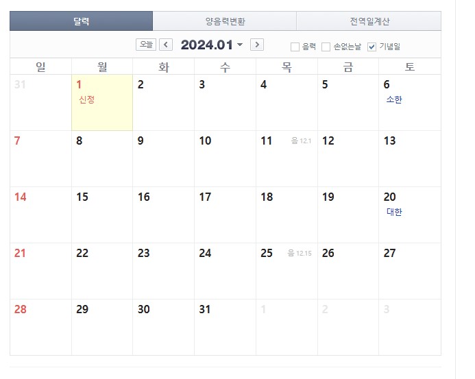 2024년 신정은 월요일 입니다.